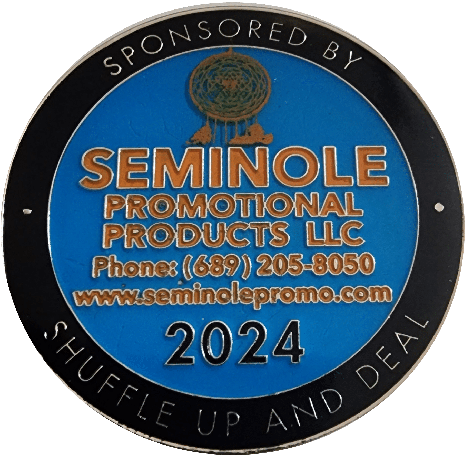 This challenge coin inspired collector’s item isn’t without value. Players who present this at any of our 2024 events get an additional 1500 in chips at the start of the tournament. Sponsored by Seminole Promotional Products, this metal-epoxy coin tells everyone that YOU are part of the Change!